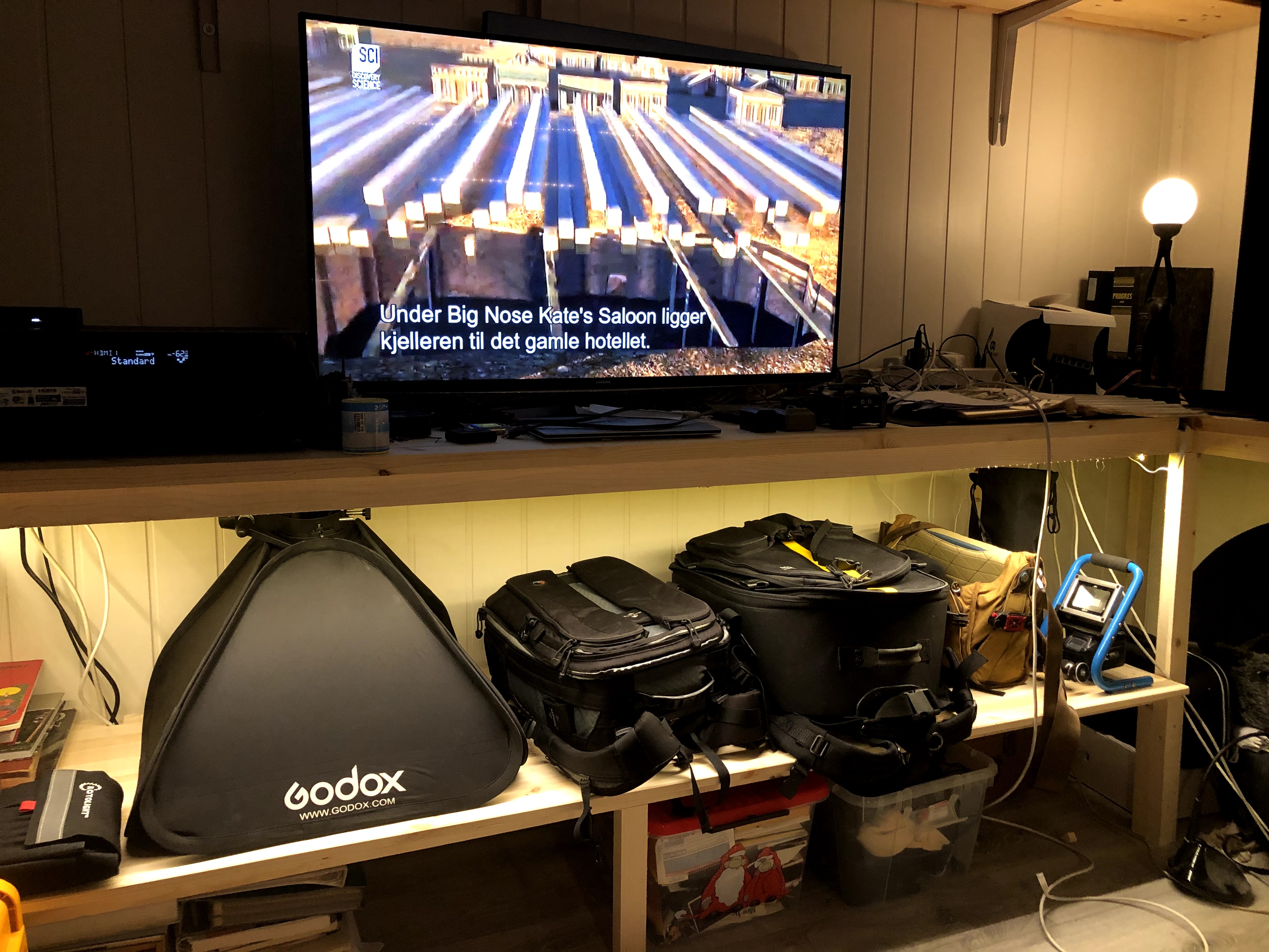Været er helt perfekt til å være inne i, men noen sysler kan man allikevel finne på. Hobbykroken min har fått ny benk og nye hyller og det ble ikke så ille. Til toppen benyttet jeg en benkeplate på 28*60*2500mm og til hylla under brukte jeg en hobbyplate på 18*60*2500mm.