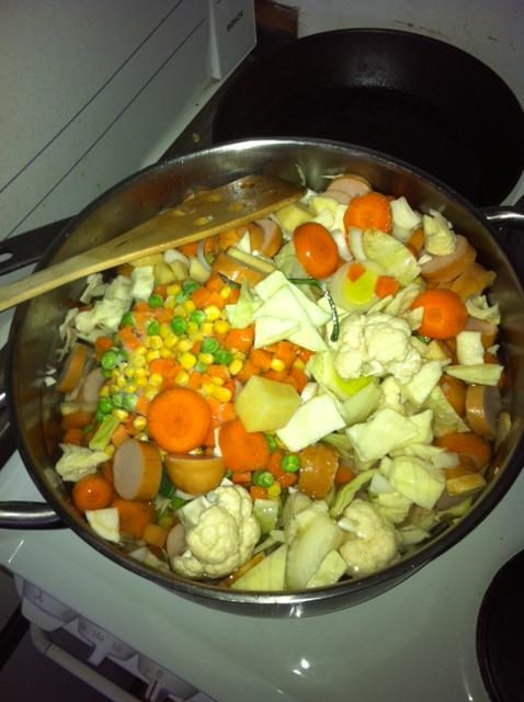 Av og til får jeg veldig lyst på grønnsakssuppe og da lager jeg den fra bunnen av. Man «tager hva man haver» og det blir litt slik spikersuppe. Da har jeg middag i minst tre dager fremover og det skal smake godt. Jeg var nede i butikken og handlet en del grøntfor nå og det er tydelig at det ikke er sesong for det. Mye dårlig kvalitet på grønnsaker dessverre.