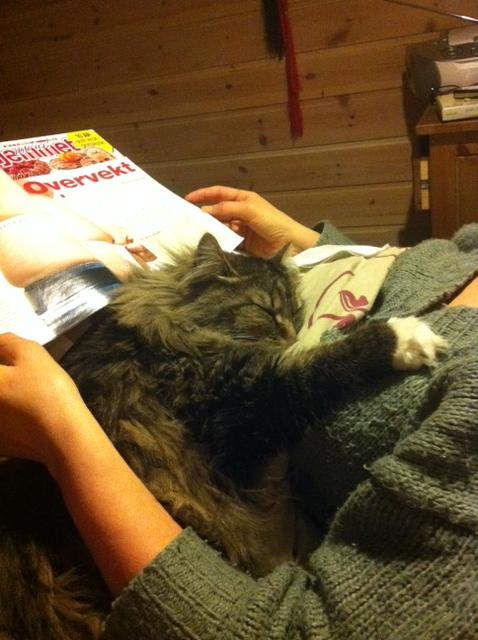 Det er noe så fredelig med slike dyr og man blir så glad innvendig. Når jeg kommer hjem på helgene kommer de begge to og vil ha plass i fanget eller på nakken. De maler så det durer og prater som en foss.