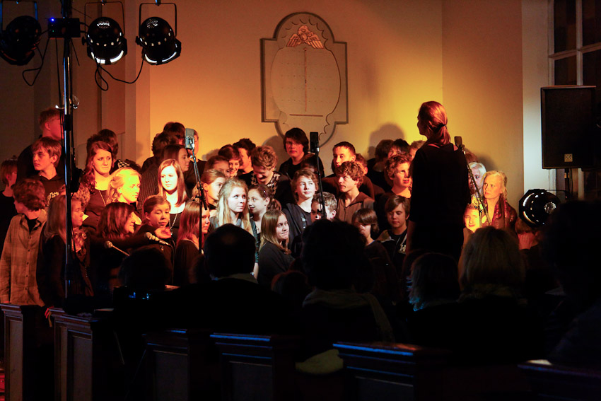 Det hele startet med orkesteret som spilte en låt. Stilen var nok ikke helt min og lyden inne i kirken ble alt anmet enn behagelig, men det var ikke ungdommenes sin skyld. Åpent slagverk lager mye lyd.