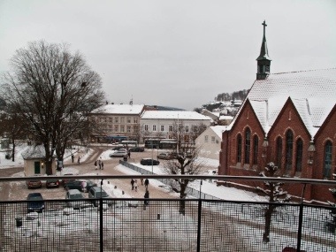 Til høyre på bildet sees den katolske kirken.