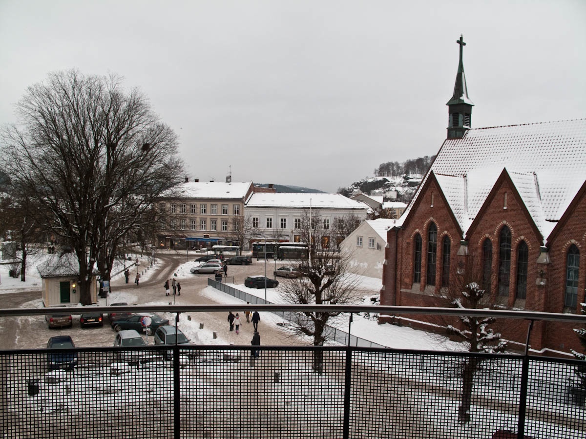 Fetteren mitt bor midt nede i byen og har fin utsikt fra leiligheten. I dag stakk jeg innom en tur da jeg var i Halden for å handle litt. Utsikten er fin, men været var ikke det beste i dag. Nå begynner det å bli slik typisk vintervær vi er vant til dessverre.
