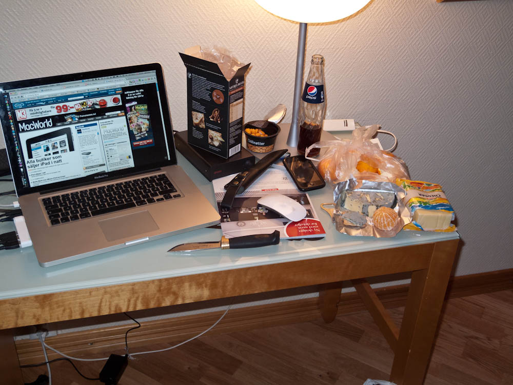 Enda en lang dag går mot sin ende og jeg kjenner at det skal bli godt å køye. I kveld har jeg sittet her på rommet og kost meg med litt kjeks og et par osteslag.