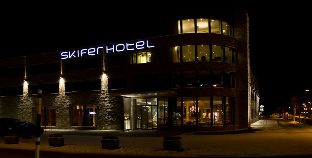 Hotellrom kan være ok, men du verden hvor kjedelige også. Etter å ha sittet her noen timer med jobb fant jeg ut at det var på tide å rusle ut i kveldsmørket. Borte ved torvet, hvis man kan kalle stedet for det, var det kommet opp et nytt hotell som het Skifer hotell. Det virket svært nytt og jeg har ikke lagt merke til det tidligere.