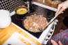 Her holder jeg å forberede gryta med Güvec hvor det lagvis ligger lam og grønnsaker av diverse slag.