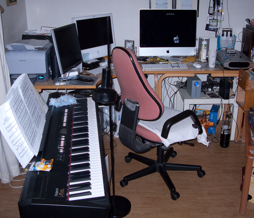 Etter at jeg anskaffet meg et Roland FP7 keyboard i fjor sommer har det blitt moro å øve igjen. Nå kan jeg sitte ved pianoet utover natta med hodetelefoner å spille alt jeg orker uten å forstyrre noen. Keyboardet er koblet til Mac’n og der er det nå mulig å eksperimentere skikkelig med lyder og komp. Hjemme i Halden har jeg et vanlig piano, men noe slikt er det ikke mulig å ha på en leilighet i Oslo. Stakkars naboer som skulle ha hørt på slikt bråk:-) Tidligere ble det bare øving i helga, men nå kan jeg kose meg mye mer med instrumentet gjennom de dagen jeg er på leiligheten.