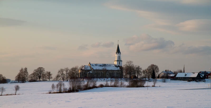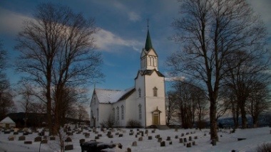 og dette er kirken på Inderøy. Begge ligger flott til i landskapet.