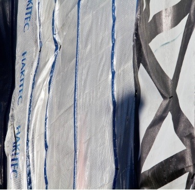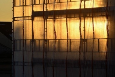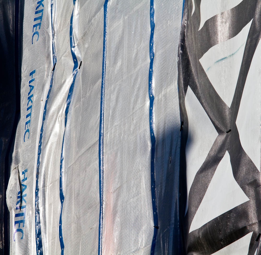 Her har jeg tatt bilde av presenningen som nabobygget er pakket inn i. Linsa er Nikkor ED 180mm 1:2.8.