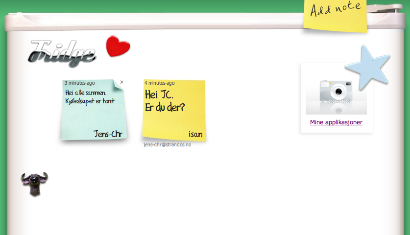 Et artig på funn er nettopp kjøleskapet. Her kan besøkende legge igjen beskjeder o.l.