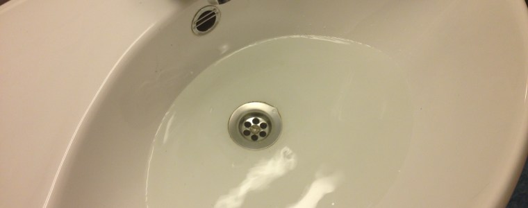 2014-07-24 09.42.51Vasken på jobben har i det siste blitt mindre samarbeidsvillig og vil ikke så lett gi slipp på vannet. I dag tidlig da jeg kom på jobben var det helt stopp etter at jeg vasket hendene og da var det bare å gyve løs på problemet. Vannlåsen ble demontert og jeg kunne se at den var helt tett så jeg regnet med at dette ble en lett match, men den gang ei. Etter montering av vannlås så helte jeg vann i vasken og det stod der like godt. Ved ny testing med vannlås på og videre rør frakoblet så sprutet vannet rett ned i bøtta. Låsen er dermed helt ok og problemet ligger i det tynne røret som går ned i gulvet. Da følte jeg at det var på tide å skrive et notat til vaktmesteren i stedet. Her må det stakebånd eller Plumbo til tror jeg.