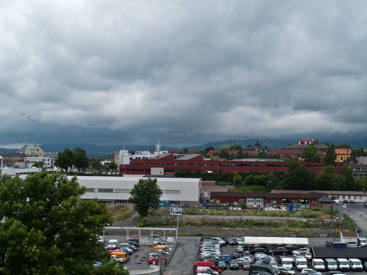 20110718-DSC01071.jpg, originally uploaded by jechstra.Det er ikke noe fint sommervær ute i dag. Utsikten fra kontoret har vært omtrent slik mesteparten av dagen og det har også kommet regnskurer som virkelig inneholder vann.