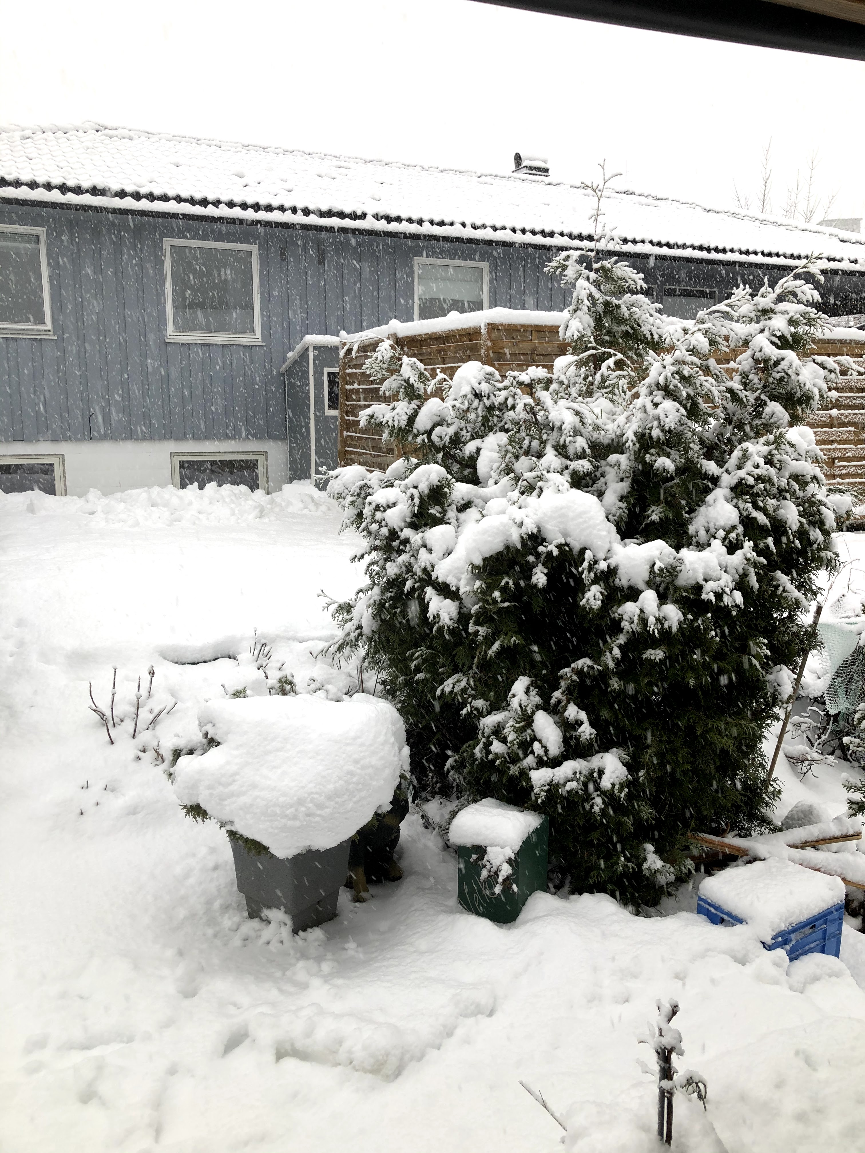 Natten har bidratt med litt mere snø ute ser jeg. Det ser ut som det er omtrent 10 cm med snø som har kommet ned.