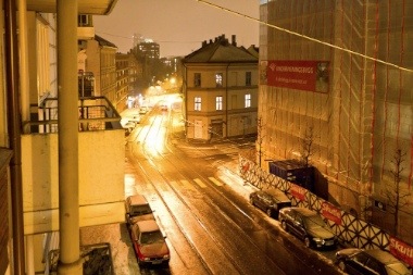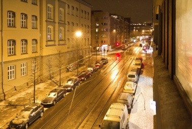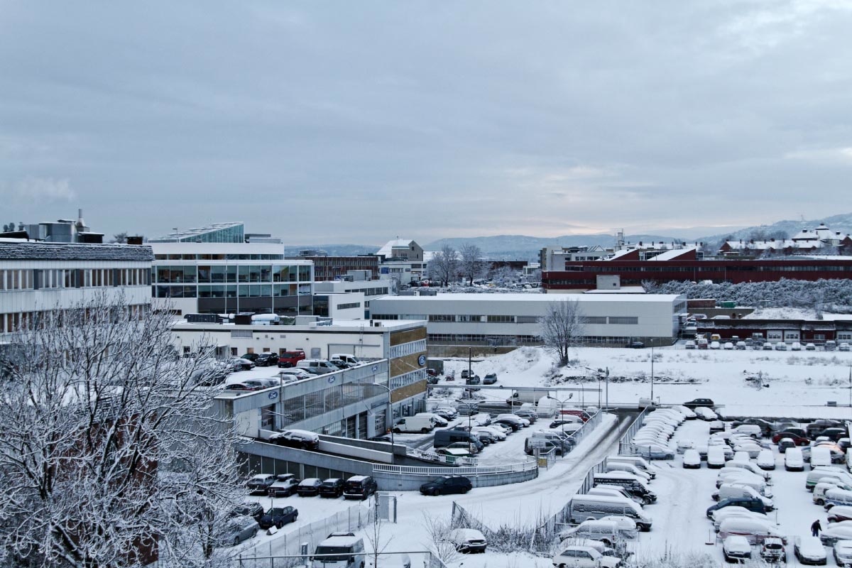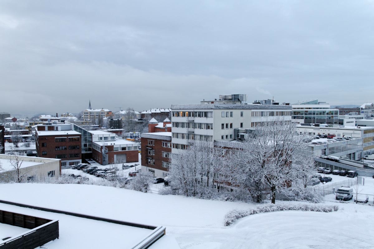 Etter å ha jobbet med bilder og ryddet på disker her i kveld tok jeg med kameraet ut på verandaen for å dokumentere hvordan det er her nå på kvelden. Guffent vær, ikke noe å rope hurra for, men jeg er glad vi har årstider. På bilde nr.1 ser man sydover Trondheimsveien og man kan lett kjenne igjen Plaza nede i byen.