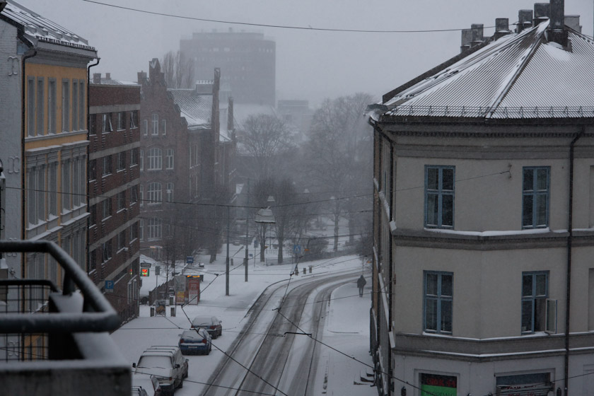 I går sa meteorologene at vi kunne få 30 cm med snø her i Oslo og jeg håpet jo i det lengste at de tok feil slik som mange ganger før, men nå til morgenen begynner deres spådommer å slå til. Det er hvitt på bakken ute og det snør tett.