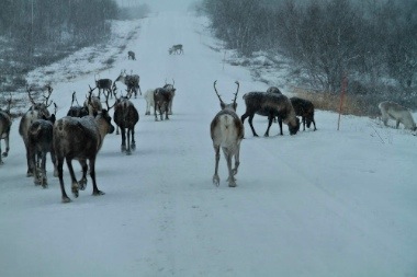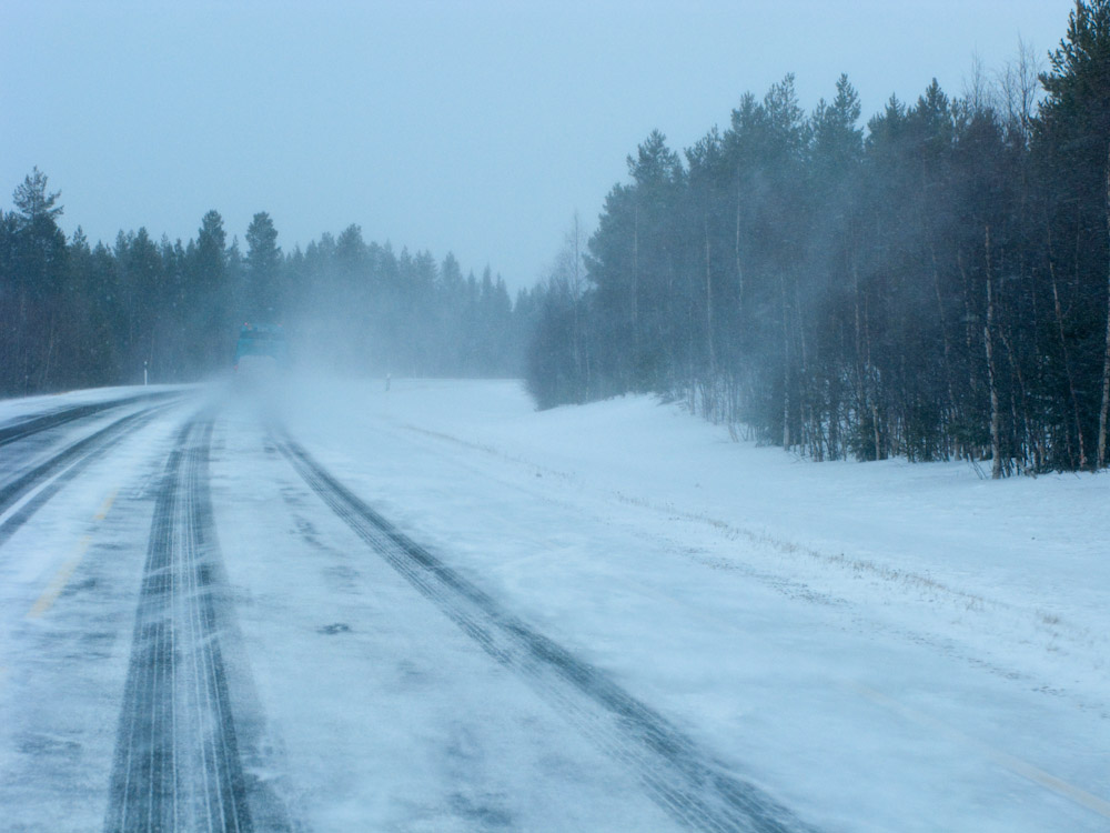 I dag har jeg fått en del av det begge. Noen reinsdyr og en mengde snø. Jeg dro fra Storslett(Troms) i formiddag og dro rett inn i Finland da jeg kom til Skibotn. E8 går innover i Finland lanfs svenskegrensa og det er en grei vei å ta når jeg skal rett sydover og hjem. Allerede i Troms lå det snø og en del kom i natt. Utover dagen økte det på og sikten ble verre. Utpå ettermiddagen etter at jeg passerte grensa til Sverige ble det så ille å kjøre at jeg ville stoppe for natta. Egentlig hadde jeg tenkt å sove noen timer i bilen i soveposen jeg har med, men med det været som seilet opp fant jeg ut at det var bedre å ta inn på hotell. Sikten langs veien ble svært kort og de siste mila inn mot Kiruna var tøffe å kjøre. Egentlig skulle jeg ikke til Kiruna i det hele tatt for riksvei 45 går 5 mil utenfor byen, men jeg valgte å gjøre denne omveien for å ligge trygt i natt.