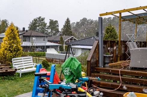April nærmer seg slutten og vi har hatt noen fine dager, men i dag tidlig endret dette seg. Ute er det 3 grader og det snør/sludder i dag.
