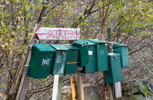 Spørsmålet er bare om de vil ha besøk dit. Jeg kjørte forbi det skiltet dere ser på bildet to ganger og måtte tilslutt spørre meg frem. Et lite og sprukkent treskilt er alt som forteller noe om at her finnes det et sted som heter Skjerjehamn. Skiltet er hjemmelaget og kommer ikke fra noen veimyndighet i allefall. Jeg tok ned den lille sandveien og kom frem til statuen av kongen. Statuen er fin den og jeg synes kunstneren, Knut Steen har gjort en fin jobb.