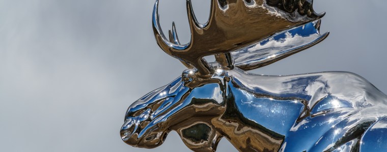 Den skinner kraftig når du kommer kjørende og om natten er det visst et blålig lys på den. Jeg har kun sett den i dagslys og det er et flott syn da også. Elgen er 10 m høy og synes meget godt.