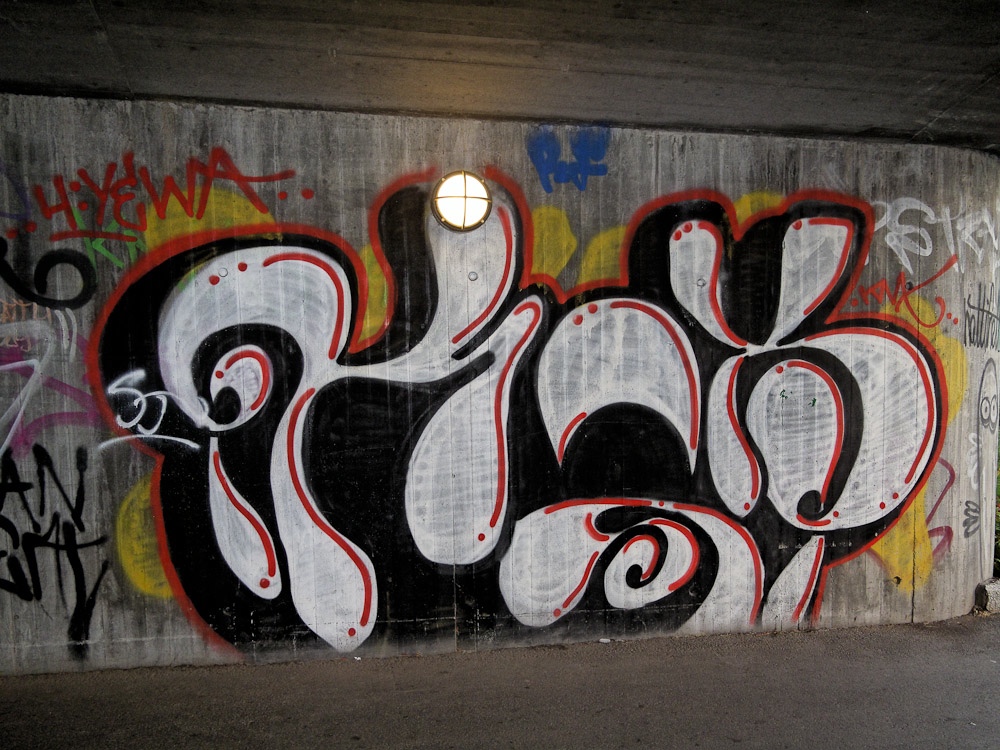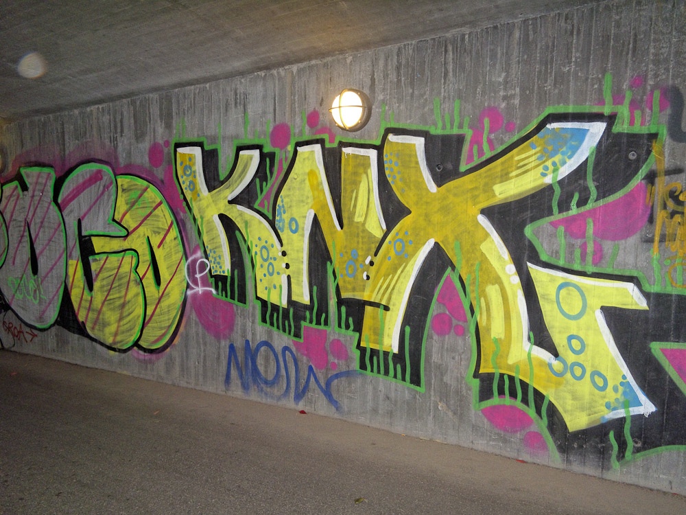 Rett bortenfor der jeg bor er det to vegger som det males på. Dette er siste tilskuddet der. Dette er tydlig gjort av folk som vet hvordan slike ting skal lages.