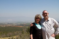 På søndagen dro vi alle sammen opp i fjellet sydvest for Denizli og kjørte omtrent så langt som veien gikk. Der stoppet vi og så på utsikten. Til venstre bak oss i bildet på den andre åsen kan man se en liten hvit avlang flekk, det er Pamukkale. Et meget kjent sted i Tyrkia. Vi har vært der før, men dro ikke oppom denne gangen.