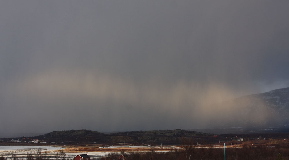 På bildet kan du se stripene med regn, men det synes aldri slik der som øynene ser det.