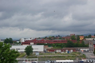 Plutselig slo sola igjennom skydekket og jeg fikk et flott skue gjennom hotellvinduet mitt. Det var bare å hive opp kameraet å kinpse.